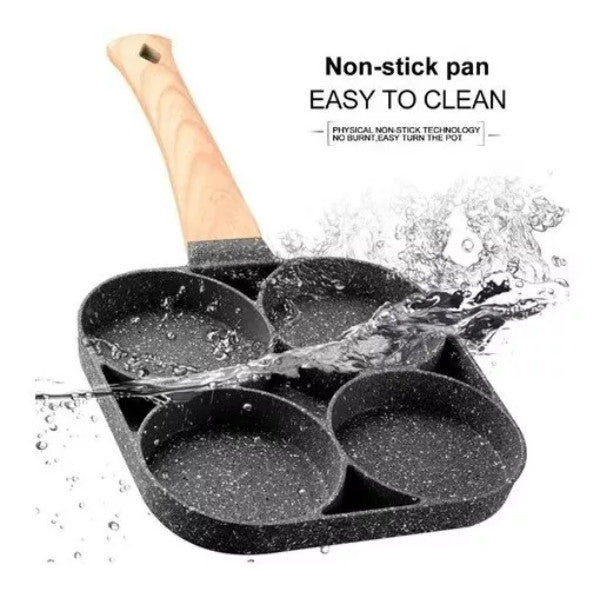 Usos múltiples: Este sartén es muy practico para preparar Huevos, Tortillas, Arepas, Pancakes, Hamburguesas entre otros, cuenta con 4 compartimentos para que cocinar sea rápido y fácil.